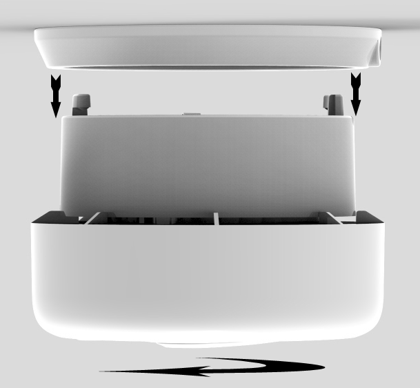 C. Siempre que las baterías se reemplacen, pruebe el funcionamiento de la alarma presionando el botón de prueba. Si se hacen los pitidos, lo que significa que el producto funciona correctamente, instale la alarma en la placa de montaje como se muestra en la Figura 3.