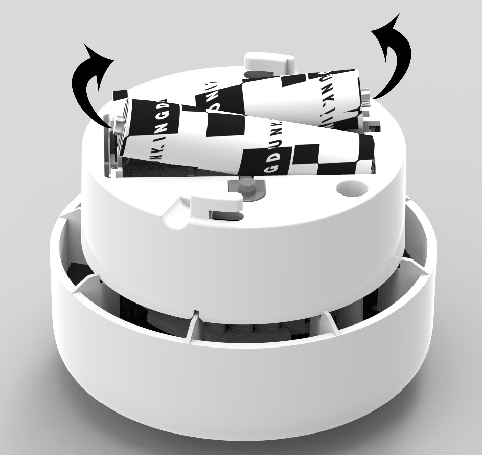 Gire la alarma en sentido antihorario y saca las baterías e instale