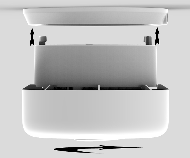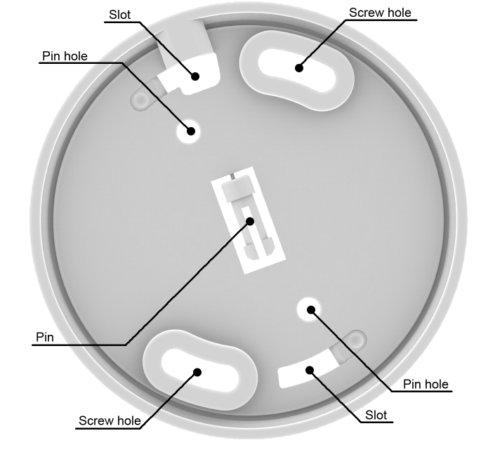 C. Inserte el gancho del producto en la ranura de la placa de montaje. Luego, gire la alarma hacia la derecha hasta que encaje en su lugar.